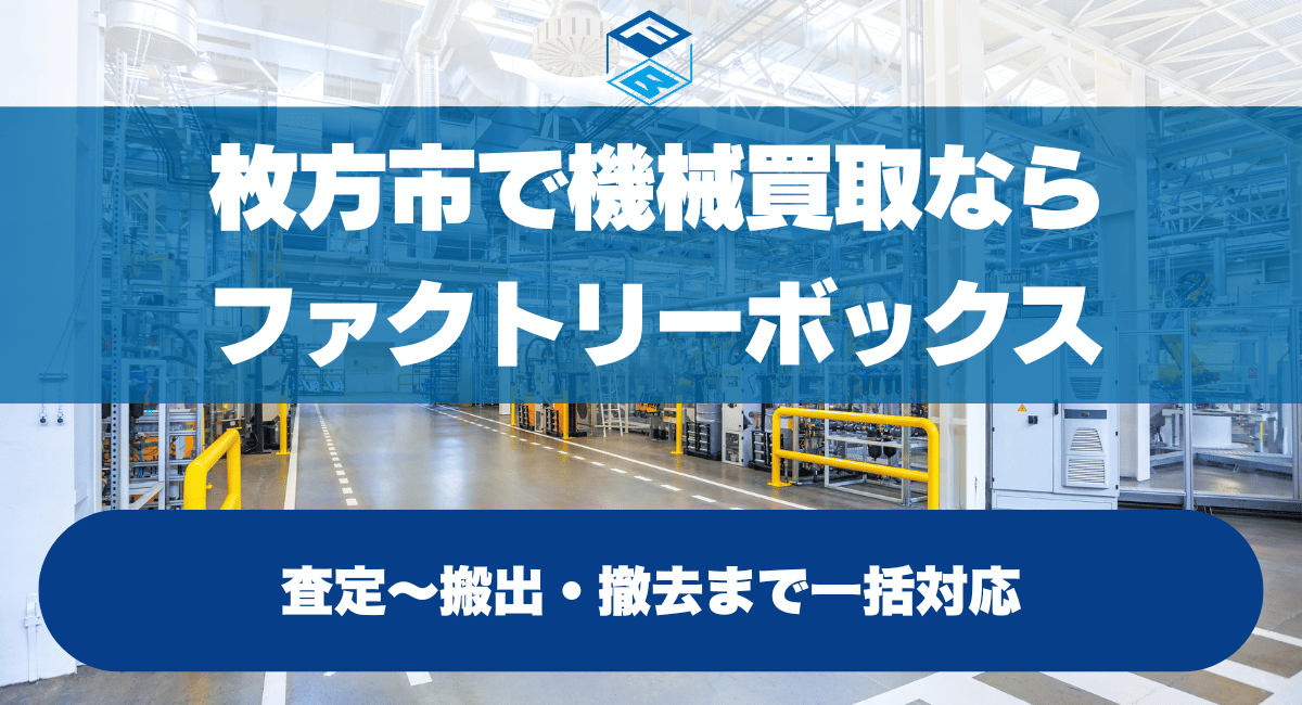 機械買取は「査定額」だけでなく、搬出の段取りや期限対応まで含めてスムーズに進むかが重要です。ファクトリーボックスは、枚方市の工場・事業所でも相談しやすい体制で対応しています。