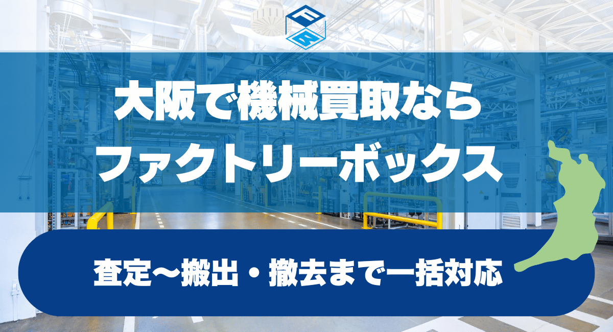 機械買取は「査定額」だけでなく、搬出の段取りや期限対応まで含めてスムーズに進むかが重要です。ファクトリーボックスは、大阪の工場・事業所でも相談しやすい体制で対応しています。